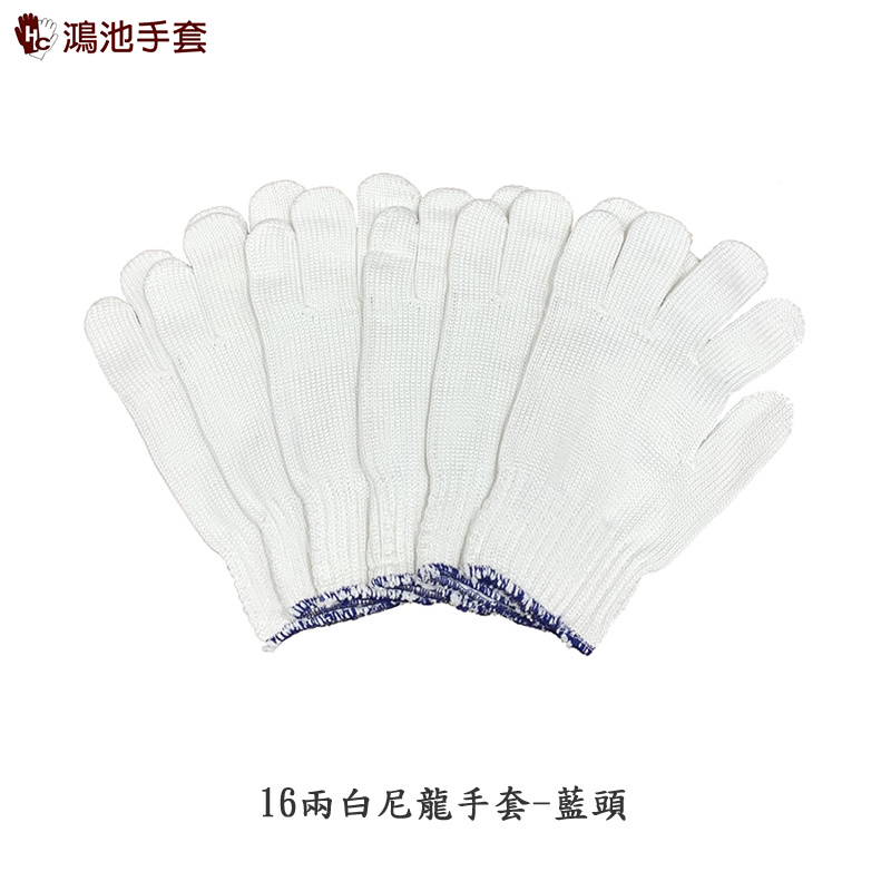 16兩白尼龍手套-藍頭