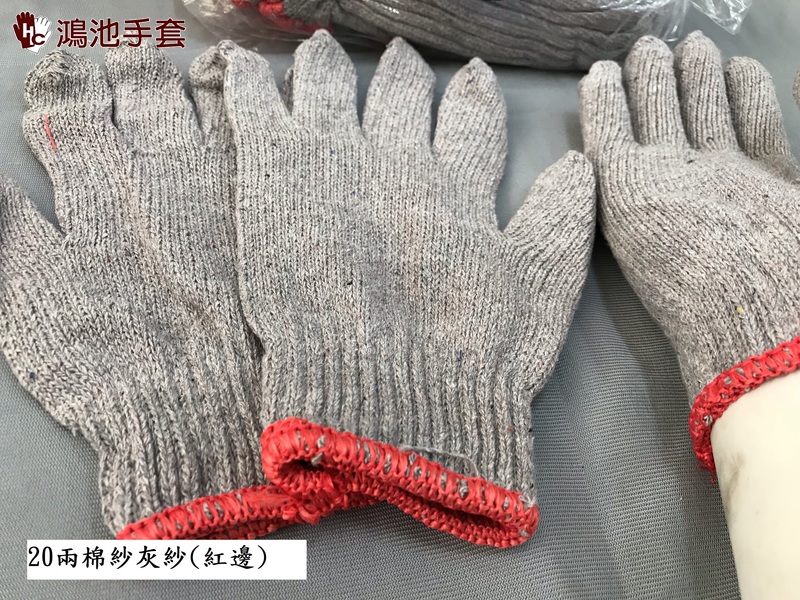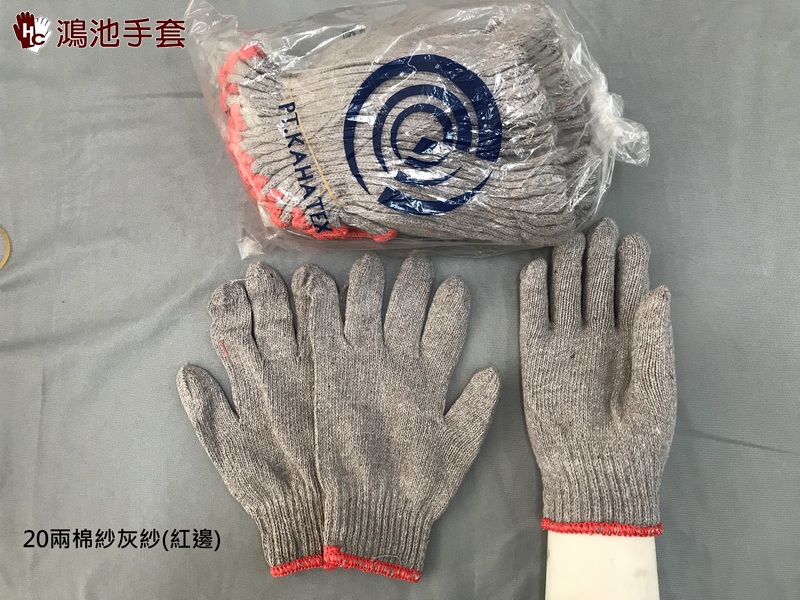 品名:20兩棉紗手套-灰-紅邊 另有白色款